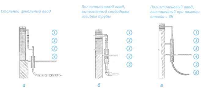 - из полиэтиленовой трубы с прямым участком (i-образный цокольный ввод), чтобы обеспечить последующую сварку с помощью отвода с закладным нагревателем.